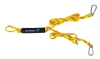 If your boat isn't equipped with a pylon or ski eye and you enjoy water sports 1,800 pound tensile strength tow harness is perfect for pulling a skier, wake boarder, knee boarder, 1-rider tubes or 2-rider tubes. Simply clip it onto the 2 stern eyes with the hooks provided, and attach your ski or tube rope. A 6" float ensures that the attachment loop is floating on top, away for your propeller. 12' long to fit larger boats. Yellow/red.