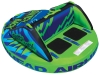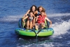 AIRHEAD SWITCHBACK is a new and exciting 4 rider towable. Two riders sit in front with a comfortable inflatable backrest and side panels to keep them in place. The other 2 riders kneel behind them, riding chariot style. It's a totally different sensation riding in front or back, so it's like 2 tubes in 1, consequently the name SWITCHBACK! This deluxe towable slides effortlessly across the wake. There are plenty of boarding straps for re-boarding from the water. SWITCHBACK features 2 heavy gauge PVC bladders and a rugged double stitched nylon cover to ensure long service. Inflation and deflation is easy with the two patented Speed Safety Valves. Size: 88" x 70" (deflated).