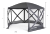 6 panel Gazebo is a perfect addition to your campsite, backyard or beach getaway. Instant HUB TOP mechanism creates a quick set up for the perfect dining area with protection from the elements and insects while offering ample space for dry storage. Made of 230T Poly Diamond Ripstop (1000mm/UV50+, Mesh Wall). Fiberglass poles.