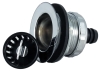 The easy-to-use threaded basket is great for kitchen and lavatory sinks. The basket is designed for a sure seal but can be loosened to drain the sink while keeping items from entering your drain. Fits up to a 2" drain opening. Made of die cast steel. Includes: Strainer, basket, tail flange, slipnut, rubber washer & locknut. 5/8" barbed drain fitting.